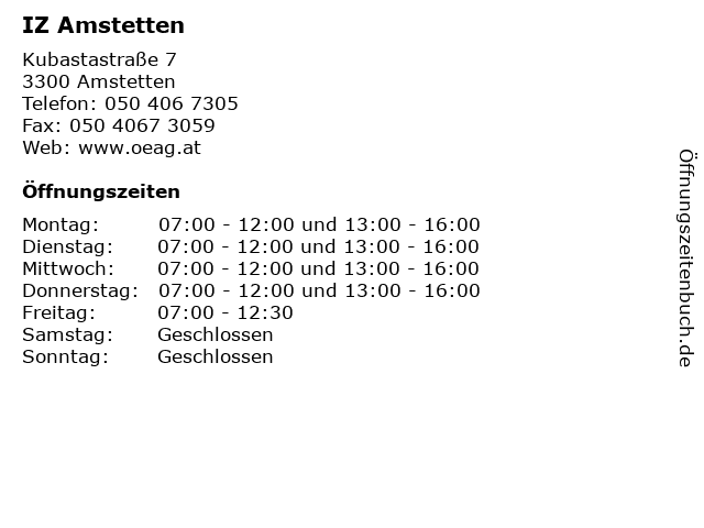| Öffnungszeiten IZ Amstetten in Amstetten anzeigen | |