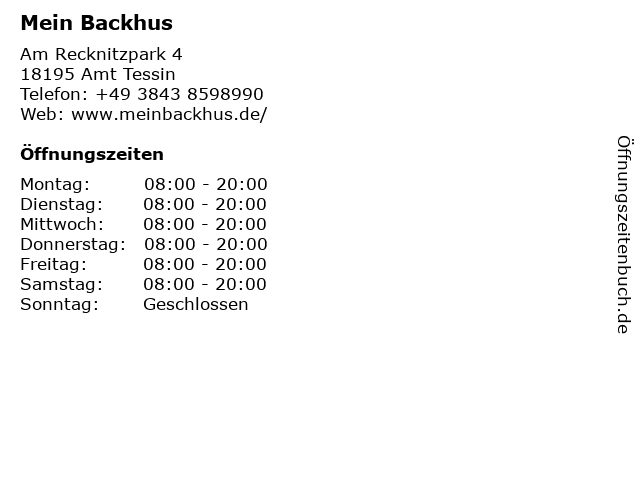 | Öffnungszeiten Mein Backhus in Amt Tessin anzeigen | |