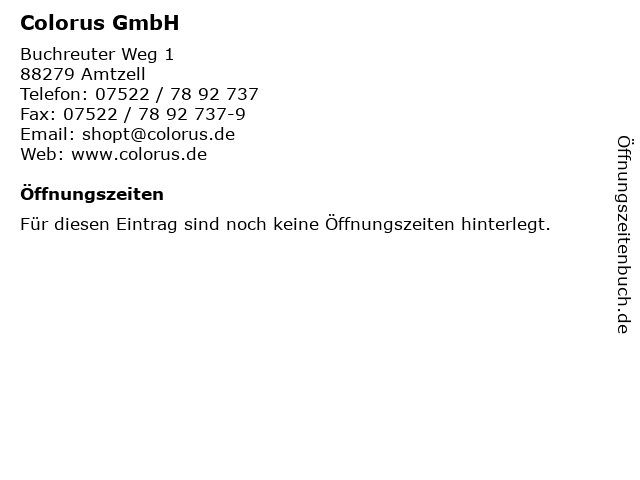 | Adresse Colorus GmbH in Amtzell anzeigen |