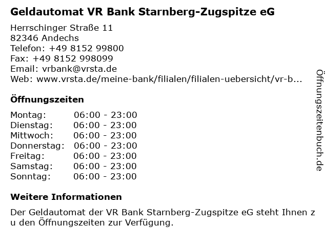 Branchen & Suchbegriffe zu Geldautomat VR Bank Starnberg-Zugspitze eG:bank, bargeld, eg, geldautomat, vr, zugspitze |