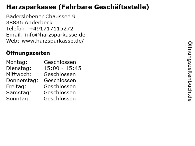 Branchen & Suchbegriffe zu Harzsparkasse (Fahrbare Geschäftsstelle):fahrbare, geschäftsstelle, harzsparkasse |