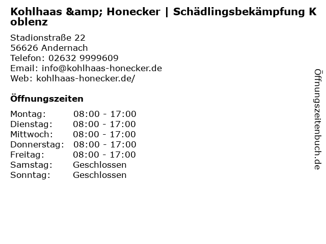 Branchen & Suchbegriffe zu Kohlhaas & Honecker | Schädlingsbekämpfung Koblenz:honecker, kohlhaas, schädlingsbekämpfung, vogelkontrolldienst |
