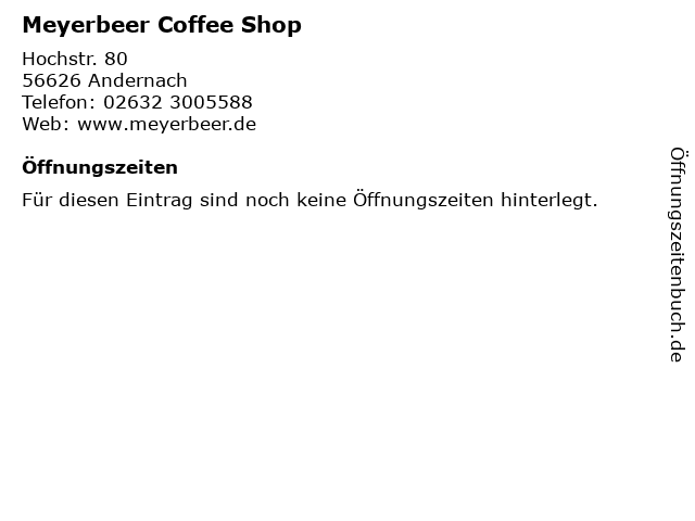 | Öffnungszeiten Meyerbeer Coffee Shop in Andernach anzeigen | |