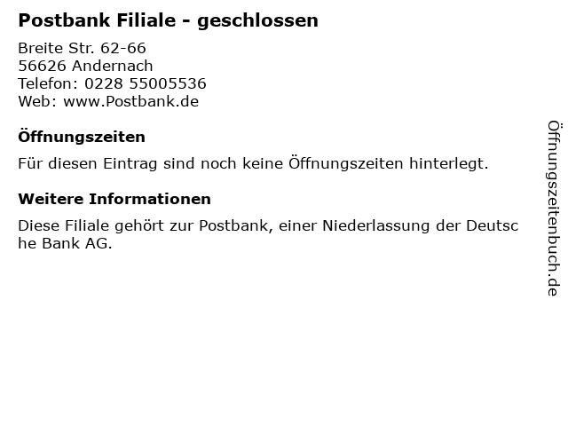 Öffnungszeiten Postbank Filiale - geschlossen in Andernach anzeigen
