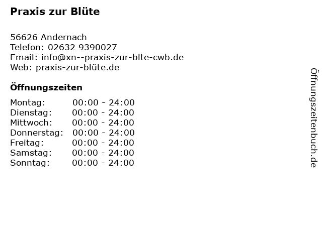 | Öffnungszeiten Praxis zur Blüte in Andernach anzeigen | |