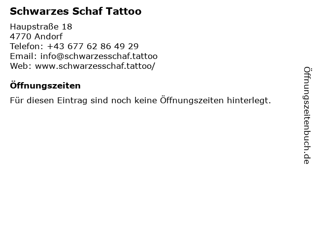 | Öffnungszeiten Schwarzes Schaf Tattoo in Andorf anzeigen | |