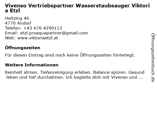 Vivenso Vertriebspartner Wasserstaubsauger Viktoria Etzl anrufen | |