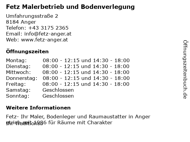 | Freitag | 08:00-12:15 und 14:30-18:00 |