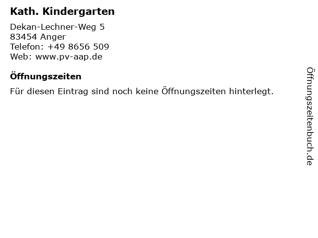 | Öffnungszeiten Kath. Kindergarten in Anger anzeigen | |