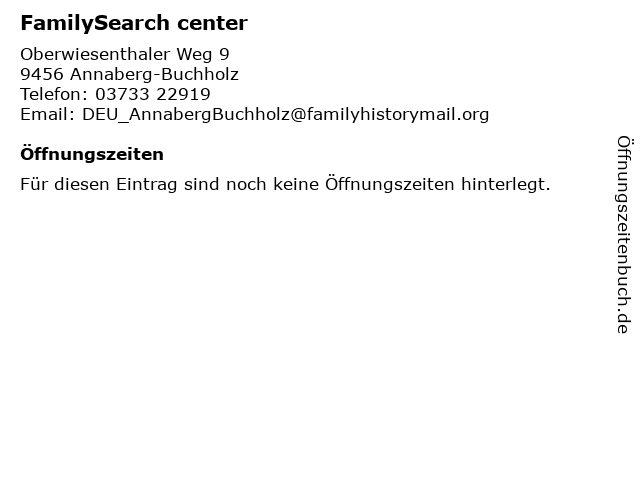 | Öffnungszeiten FamilySearch center in Annaberg-Buchholz anzeigen | |