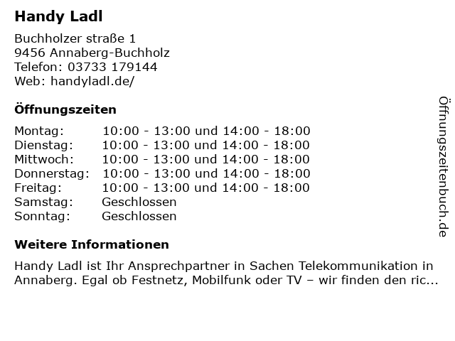 Öffnungszeiten Handy Ladl in Annaberg-Buchholz anzeigen | |