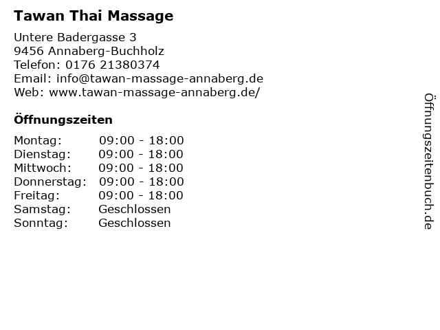 | Telefonnummer Tawan Thai Massage in Annaberg-Buchholz (0176 21380374) anrufen | |