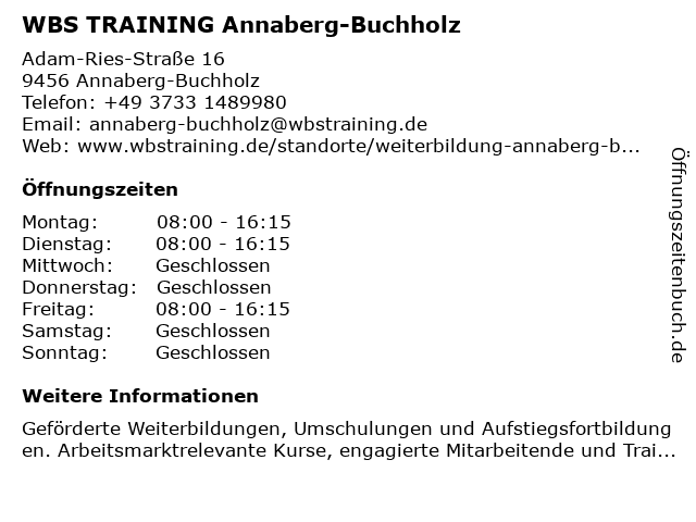 Branchen & Suchbegriffe zu WBS TRAINING Annaberg-Buchholz:bildungsgutschein, bildungsunternehmen, buchholz, coaching, fortbildung, fortbildungen, kurs, kurse, mitarbeiterentwicklung, online-weiterbildung, seminar, seminare, training, umschulung, umschulungen, wbs, weiterbildung, weiterbildungen |
