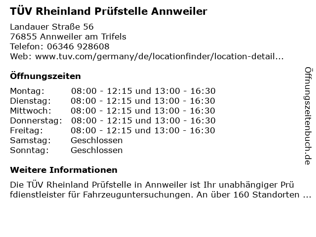 Branchen & Suchbegriffe zu TÜV Rheinland Prüfstelle Annweiler:prüfstelle, rheinland, tüv |