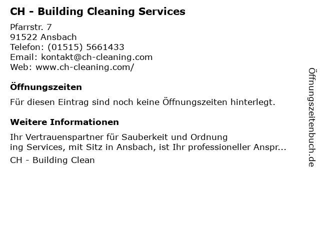 2 yell. services Gebäudedienstleistungen und Gebäudereinigung (Entfernung: 5,00 km) Am Wolfsbuck 17, 91522 Ansbach 6 |