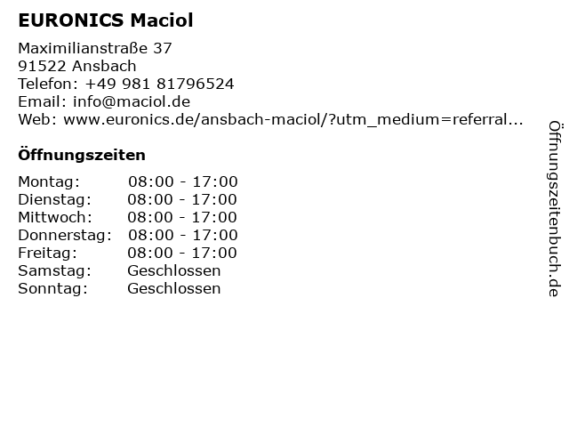 | Öffnungszeiten EURONICS Maciol in Ansbach anzeigen | |