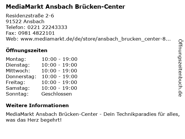 Branchen & Suchbegriffe zu MediaMarkt Ansbach Brücken-Center:anbieter für telekommunikationsgeräte, brücken, center, computergeschäft, geschäft für handyzubehör, geschäft für heimaudiosysteme, geschäft für videospiele, haushaltsgeräte, mediamarkt, mobiltelefongeschäft |