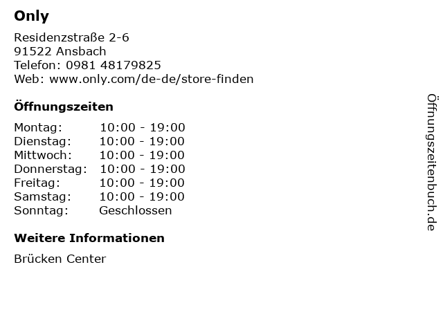 | Öffnungszeiten Only in Ansbach anzeigen | |