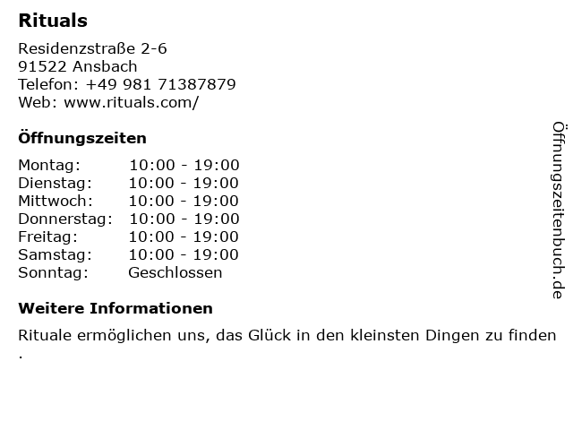 | Öffnungszeiten Rituals in Ansbach anzeigen | |