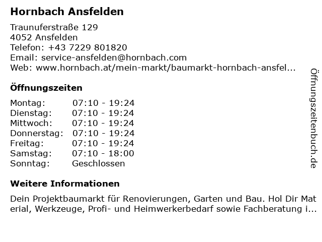 Telefonnummer Hornbach Ansfelden in Ansfelden (+43 7229 801820) anrufen | |