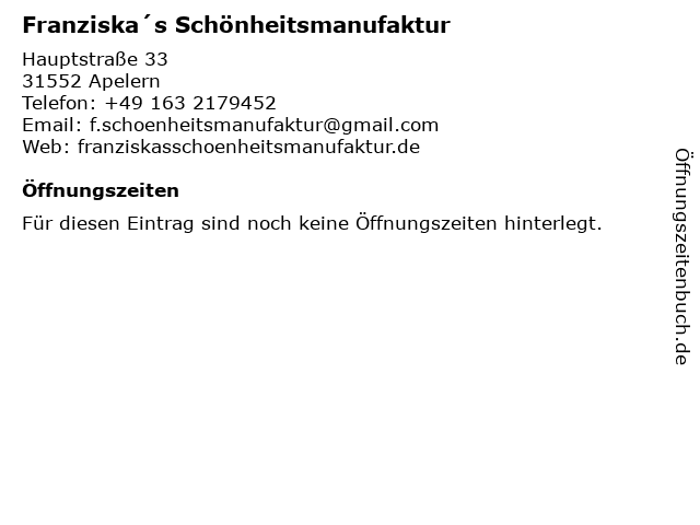 | Franziska´s Schönheitsmanufaktur anrufen | |