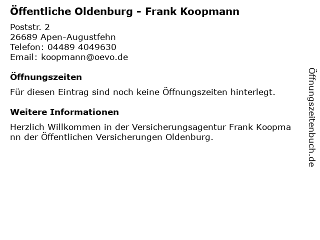| Öffentliche Oldenburg - Frank Koopmann anrufen | |