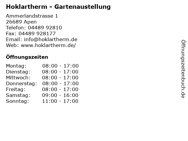 | Öffnungszeiten Hoklartherm - Gartenaustellung in Apen anzeigen | |