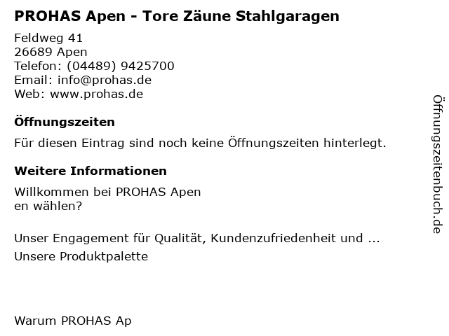 | PROHAS Apen - Tore Zäune Stahlgaragen anrufen | |