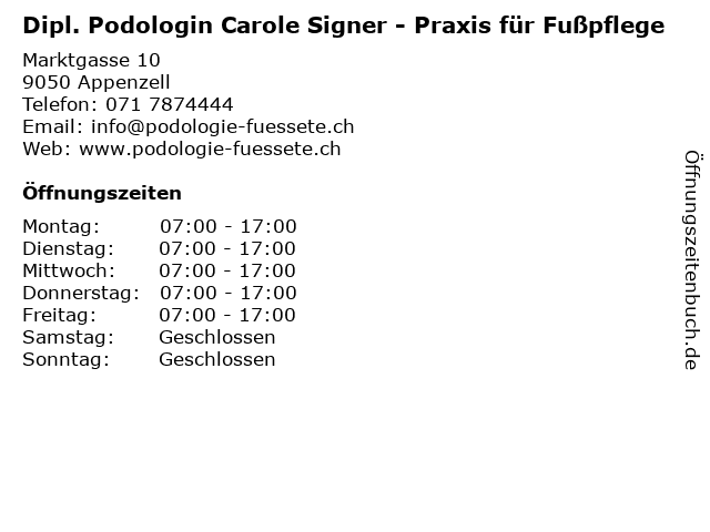 Branchen & Suchbegriffe zu Dipl. Podologin Carole Signer - Praxis für Fußpflege:carole, dipl., fuessete, fußpflege, medizinisch, pediküre, podologie, podologin, praxis, signer |