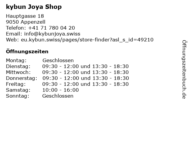 | Öffnungszeiten kybun Joya Shop in Appenzell anzeigen | |