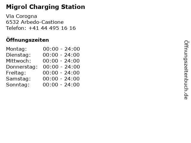 Öffnungszeiten Migrol Charging Station in Arbedo-Castione anzeigen