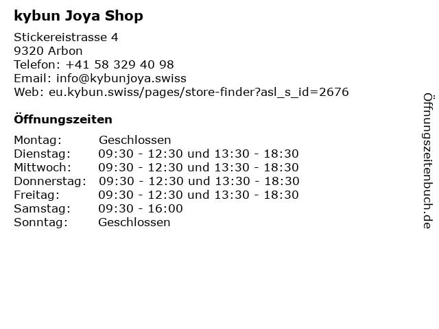 | Öffnungszeiten kybun Joya Shop in Arbon anzeigen | |