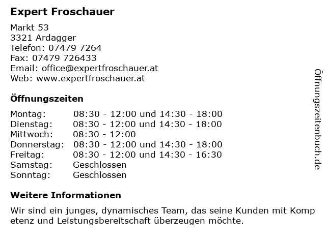 | Öffnungszeiten Expert Froschauer in Ardagger anzeigen | |