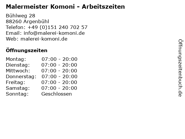 Branchen & Suchbegriffe zu Malermeister Komoni - Arbeitszeiten:arbeitszeiten, bau, baudekoration, komoni, maler, malermeister |