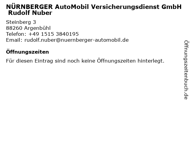 | NÜRNBERGER AutoMobil Versicherungsdienst GmbH Rudolf Nuber anrufen | |
