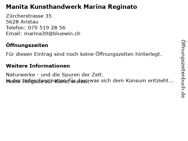 | Manita Kunsthandwerk Marina Reginato anrufen | |
