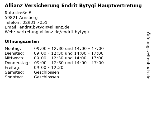 1 Allianz Versicherung Andreas Lange Hauptvertretung (Entfernung: 4,86 km) Kirchstraße 8, 59823 Arnsberg 2 Allianz Versicherung Kipka und Petruschke GbR Hauptvertretung (Entfernung: 6,08 km) Arnsberger Straße 7, 59759 Arnsberg 3 Allianz Versicherung Sascha Maas e.K. Hauptvertretung (Entfernung: 6,94 km) Im Langel 20, 59872 Meschede 5 Allianz Versicherung Heike Severin Hauptvertretung (Entfernung: 9,03 km) Settmeckestraße 1, 59846 Sundern 6 |