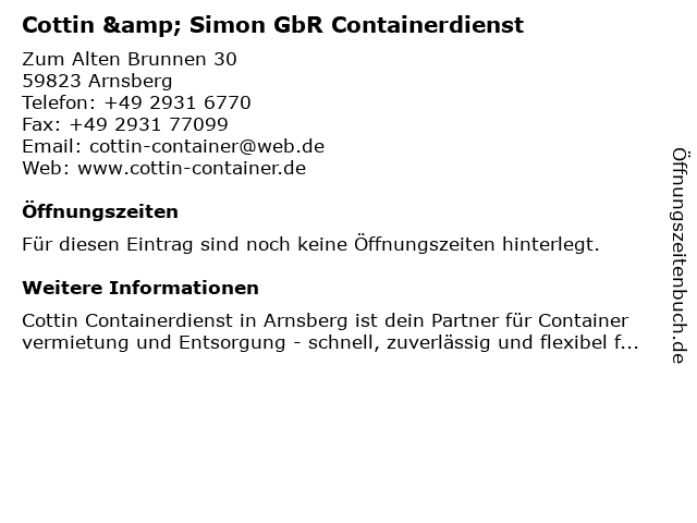 | Cottin & Simon GbR Containerdienst anrufen | |