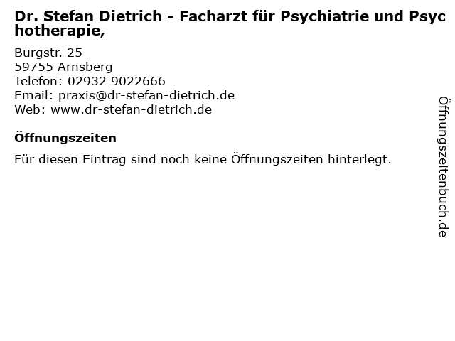 | Dr. Stefan Dietrich - Facharzt für Psychiatrie und Psychotherapie, anrufen | |
