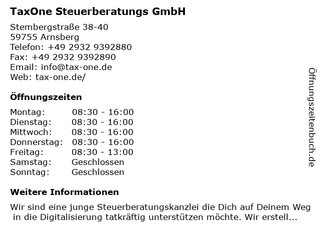 Branchen & Suchbegriffe zu TaxOne Steuerberatungs GmbH:steuerberater in arnsberg, steuerberater in neheim, steuerberatungs, taxone |
