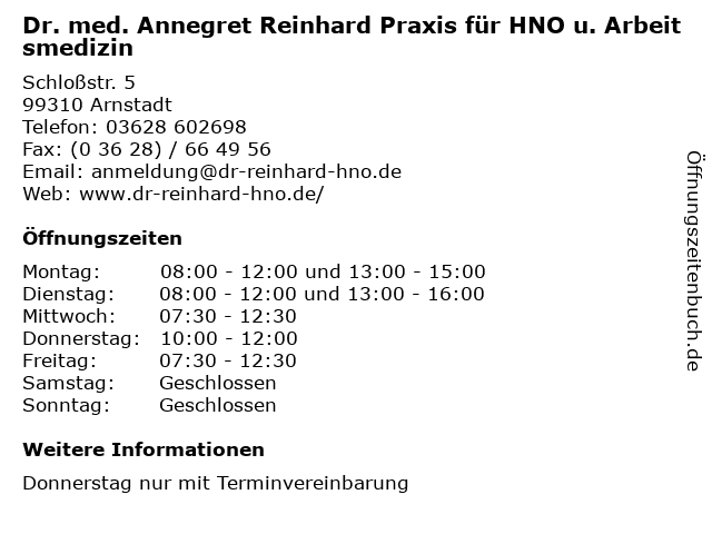 Branchen & Suchbegriffe zu Dr. med. Annegret Reinhard Praxis für HNO u. Arbeitsmedizin:allergologie, annegret, arbeitsmedizin, dr., endoskopie, hals, hno, med., nasen, ohren, praxis, reinhard, tinnitus, u. |