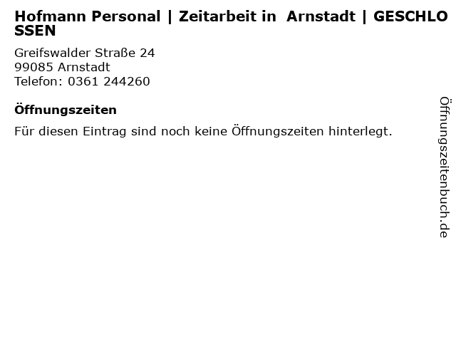 | Hofmann Personal | Zeitarbeit in Arnstadt | GESCHLOSSEN anrufen | |