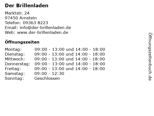 | Öffnungszeiten Der Brillenladen in Arnstein anzeigen | |