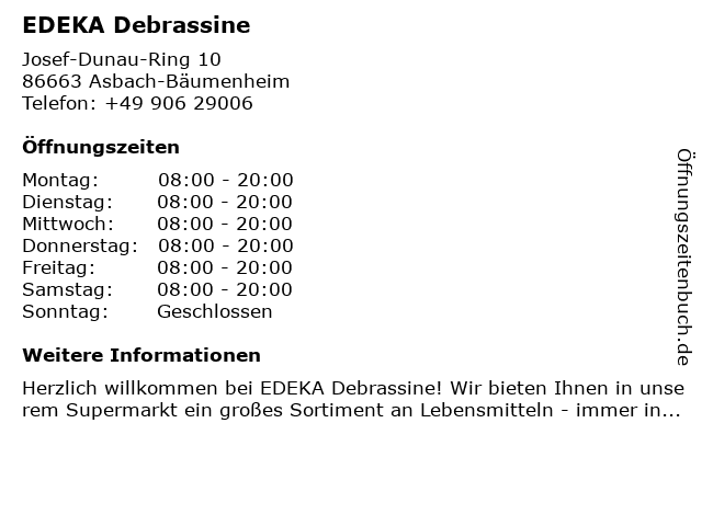 Öffnungszeiten EDEKA Debrassine in Asbach-Bäumenheim anzeigen | |