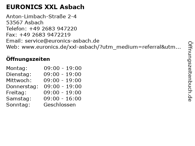 Öffnungszeiten EURONICS XXL Asbach in Asbach anzeigen