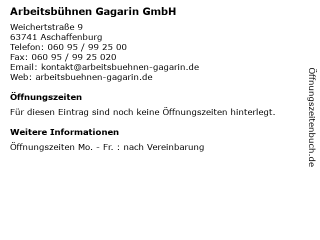 | Arbeitsbühnen Gagarin GmbH anrufen | |