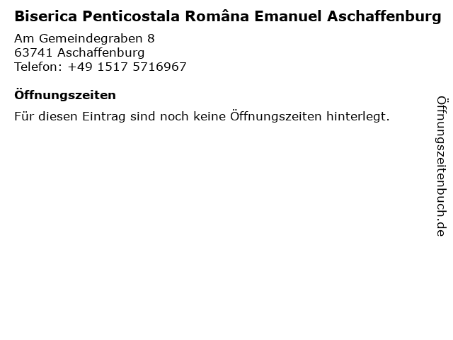 | Biserica Penticostala Româna Emanuel Aschaffenburg anrufen | |