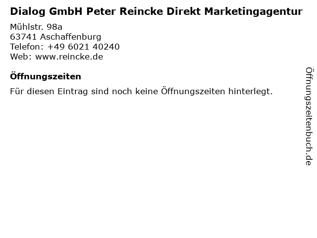 | Dialog GmbH Peter Reincke Direkt Marketingagentur anrufen | |