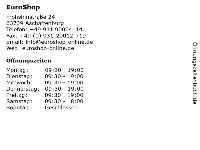 | Öffnungszeiten EuroShop in Aschaffenburg anzeigen | |