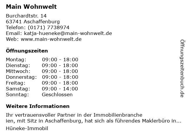 | Öffnungszeiten Main Wohnwelt in Aschaffenburg anzeigen | |